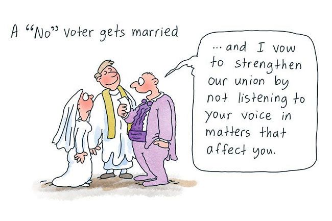 As was explained to me by a voter that changed their mind about voting, No: “Who am I to stand in the way of a chance for Aboriginals to make their lives better?”
